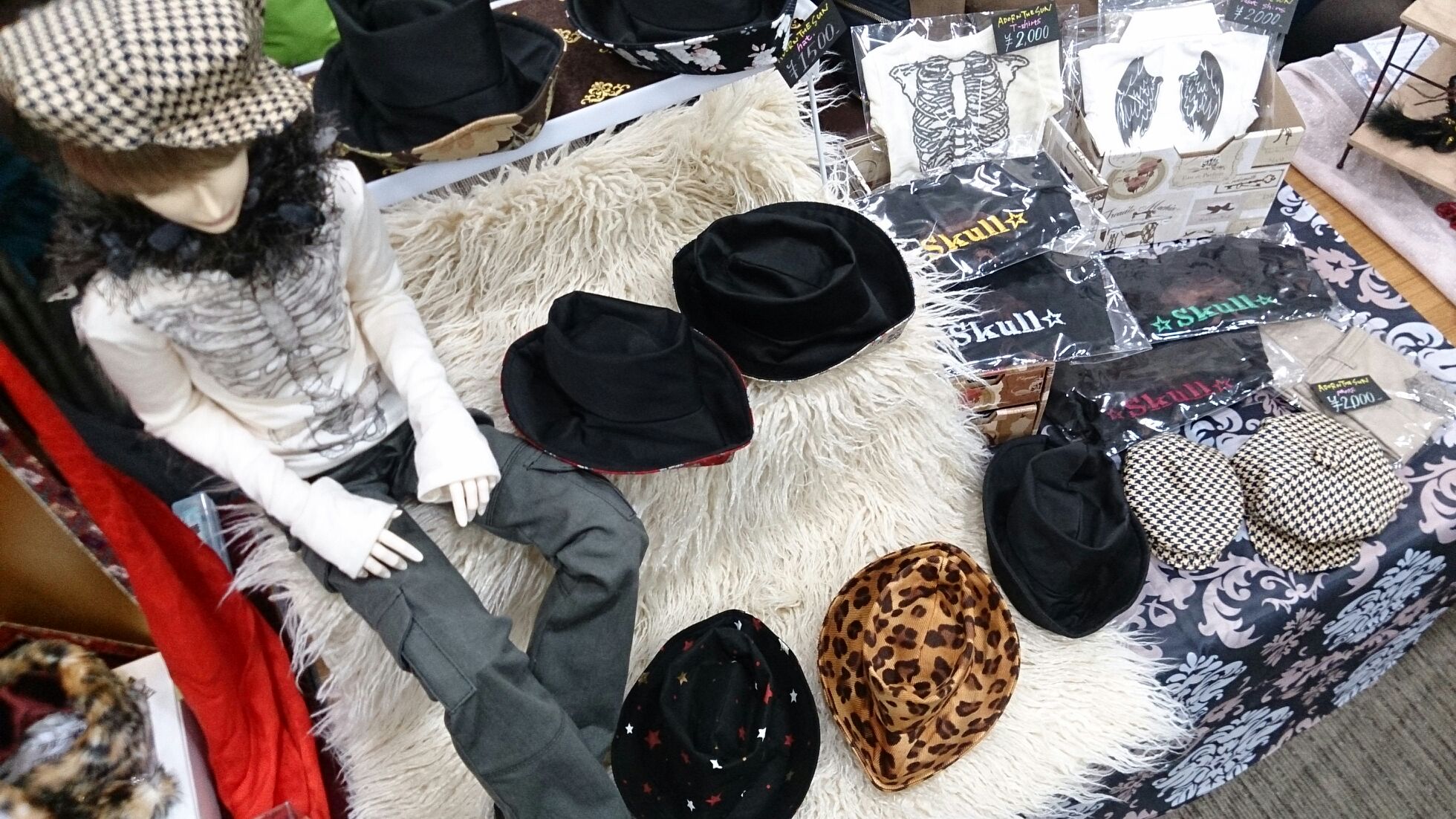 販売物はいつもの帽子と、刺繍Tシャツ。後今から作るものとしてはプリント入りのシャツジャケットとデザインカットソー。帽子はMSDサイズも作ってみようかと思ってます。