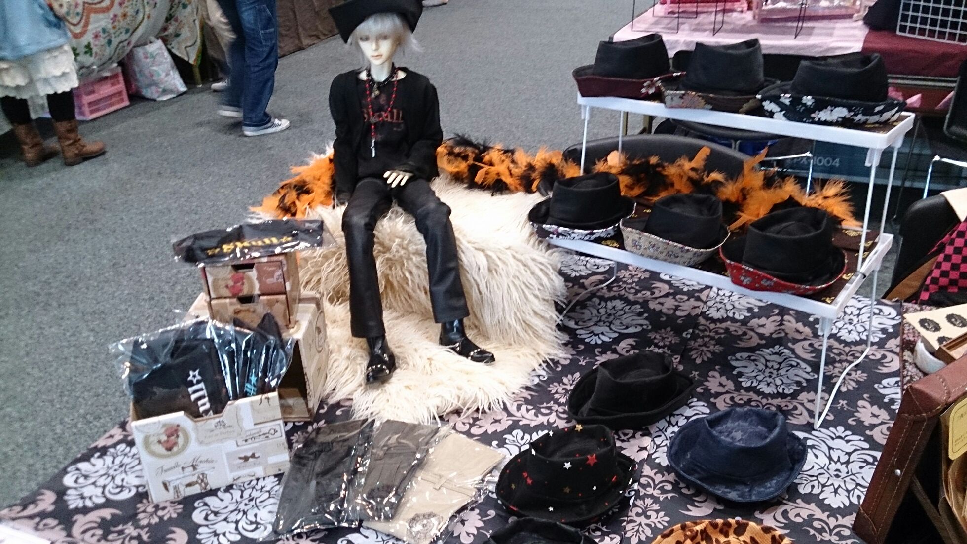 販売物はいつもの帽子と、刺繍Tシャツ。後今から作るものとしてはプリント入りのシャツジャケットとデザインカットソー。帽子はMSDサイズも作ってみようかと思ってます。